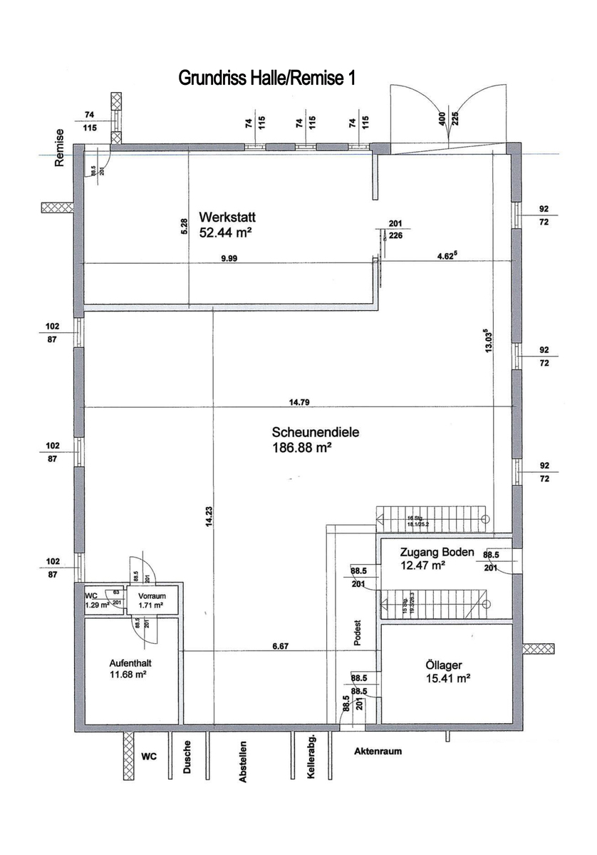 Zusätzlich zu den Hallen stehen Ihnen zwei separate Eingänge zur Verfügung, die nach Ihren individuellen Wünschen angepasst werden können. Dies ermöglicht eine flexible Gestaltung Ihrer Geschäftsräume oder Büros. Ob Sie ein innovatives Start-up gründen oder bestehende Geschäftsmodelle erweitern möchten – hier finden Sie den perfekten Raum dafür.